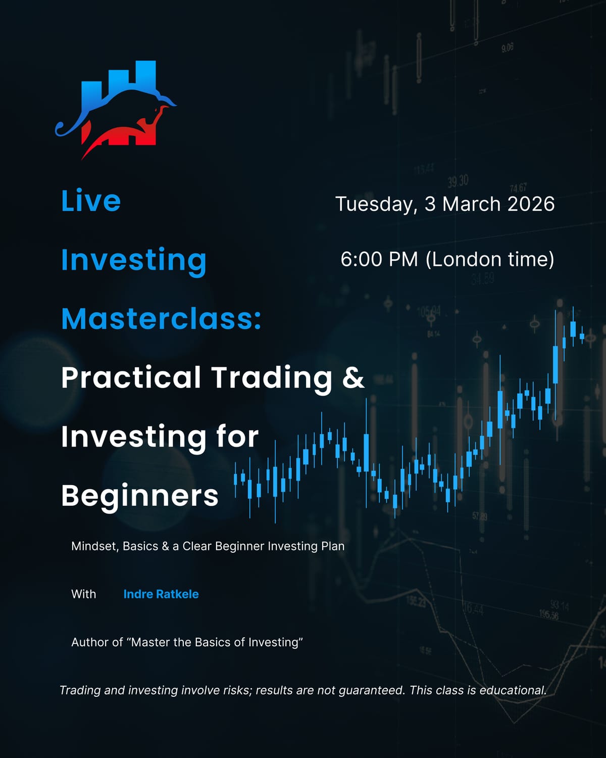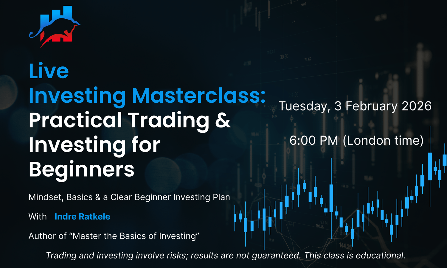 Yes. This live masterclass is designed specifically for absolute beginners. No prior knowledge of investing or trading is required.